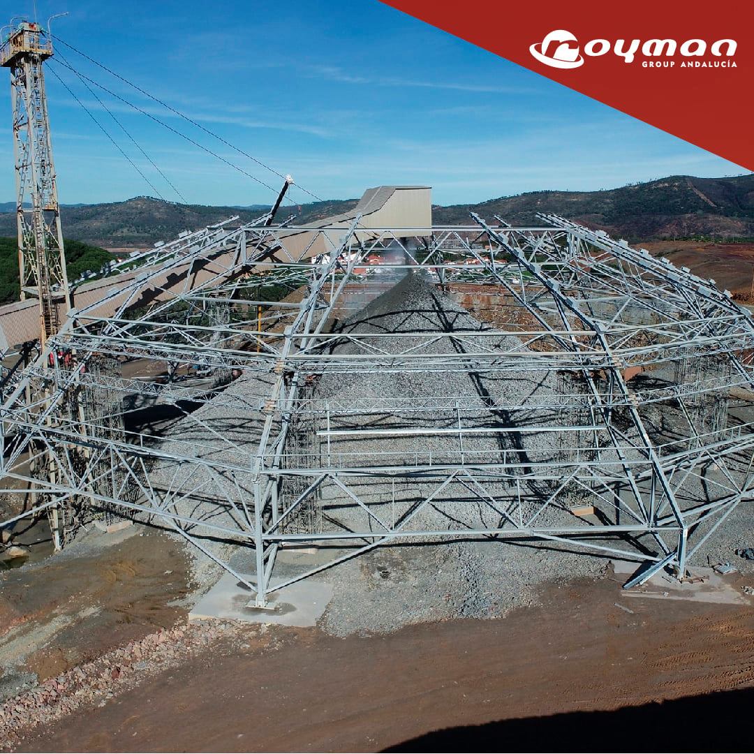 Enorme cubierta para las instalaciones de Atalaya Mining cuya finalidad es mejorar la calidad del aire y reducir las partículas en suspensión, principalmente en la zona de La Dehesa (Minas de Riotinto, Huelva). Afianzando su compromiso medioambiental con tan ambiciosa obra.