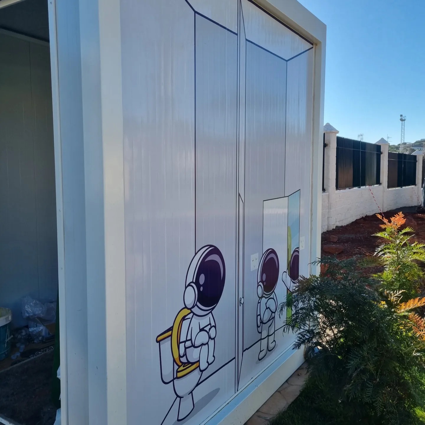 Fabricación y montaje de todo el cerramiento de metal lacado al horno, así como la señalética completa.
